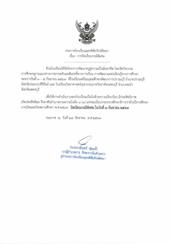แจ้งการปิดเรียนกรณีพิเศษ ในวันที่ 3 ก.ย. 2563