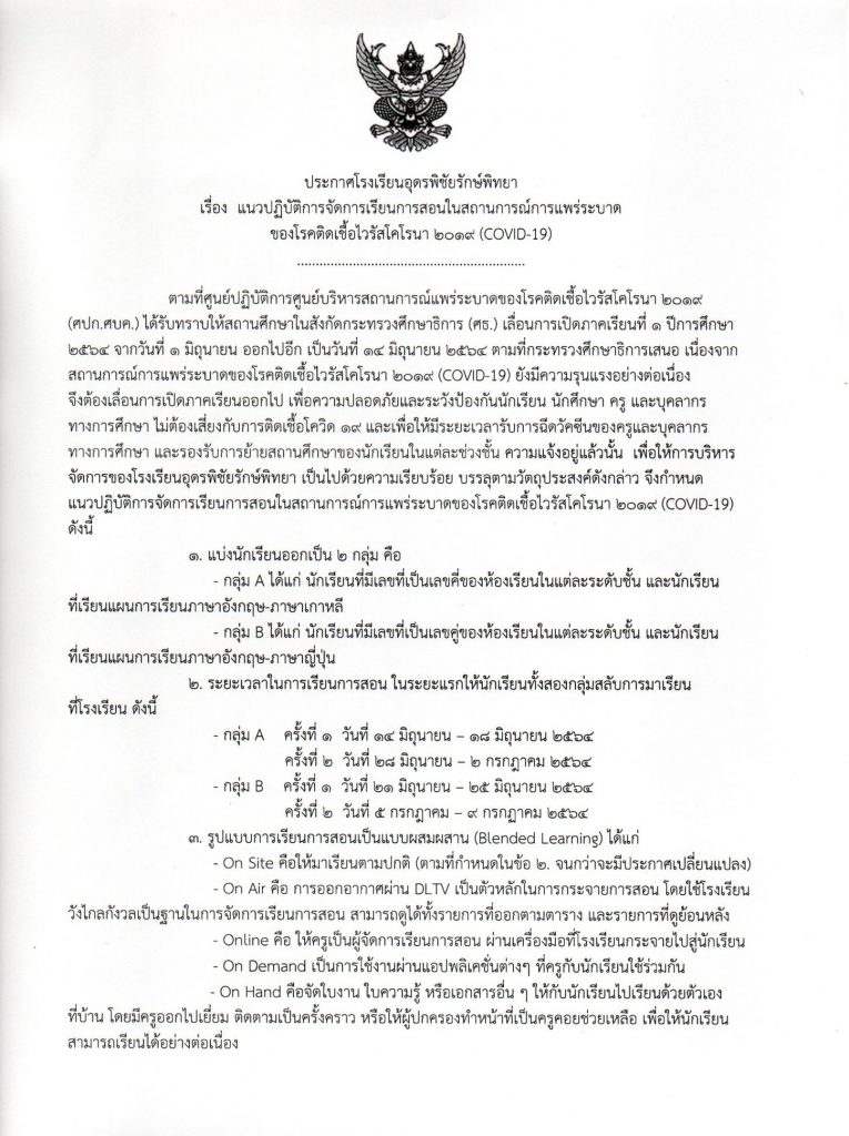ประกาศ แนวปฏิบัติการจัดการเรียนการสอนในสถานการณ์การแพร่ระบาดของโรคติเชื้อไวรัสโคโรนา 2019 (COVID-19)