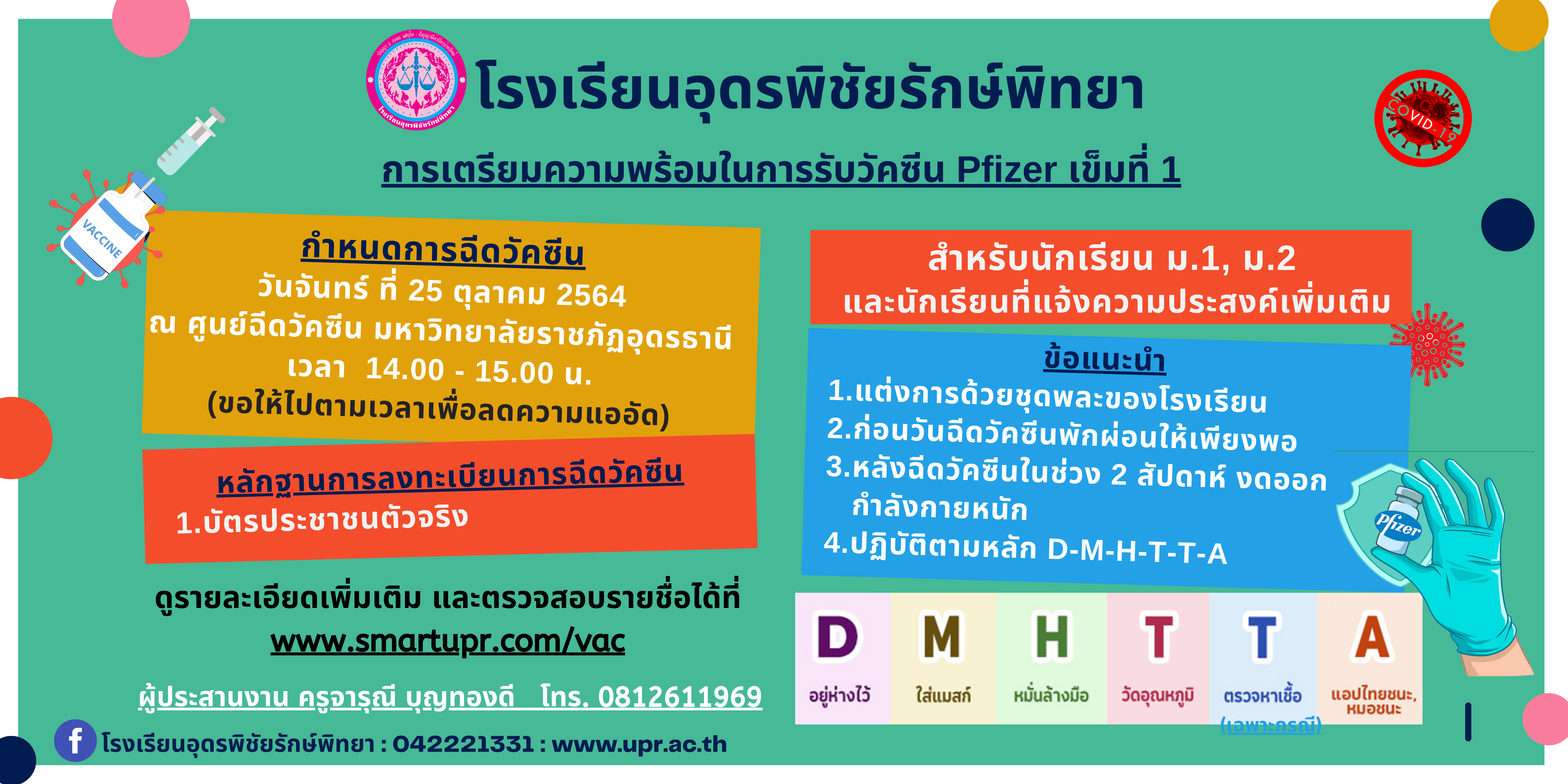 การรับวัคซีนไฟเซอร์สำหรับนักเรียน เข็มที่ 1 (รอบ ม.1, ม.2 และนักเรียนที่แจ้งความประสงค์เพิ่มเติม) – โรงเรียนอุดพิชัยรักษ์พิทยา Udonpichairakpittaya School