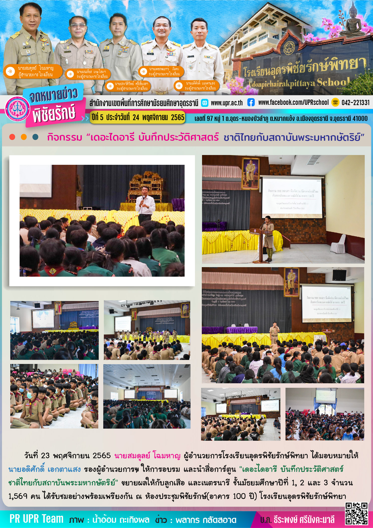 #จดหมายข่าวพิชัยรักษ์ กิจกรรม “เดอะไดอารี บันทึกประวัติศาสตร์ ชาติไทยกับสถาบันพระมหากษัตริย์” – โรงเรียนอุดพิชัยรักษ์พิทยา Udonpichairakpittaya School