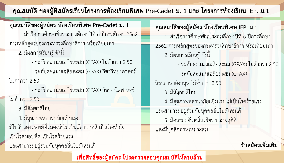 รายละเอียดประกาศรับสมัครห้องเรียนพิเศษ เพิ่มเติม