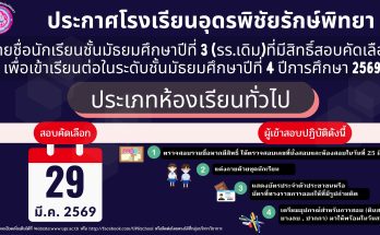 ประกาศรายชื่อนักเรียนที่ผ่านการสอบคัดเลือกเพื่อเข้าเรียนต่อในระดับ ม.1 และ ม.4 ปีการศึกษา 2569 (ประเภทห้องเรียนพิเศษ) อ่านเพิ่มเติม