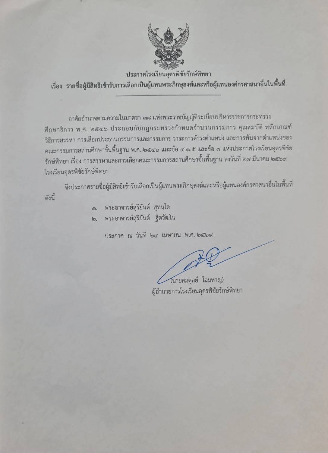 ประกาศรายชื่อผู้มีสิทธิเข้ารับการเลือกเป็นผู้แทนพระภิกษุสงฆ์และหรือผู้แทนองค์กรศาสนาอื่นในพื้นที่ – โรงเรียนอุดพิชัยรักษ์พิทยา Udonpichairakpittaya School